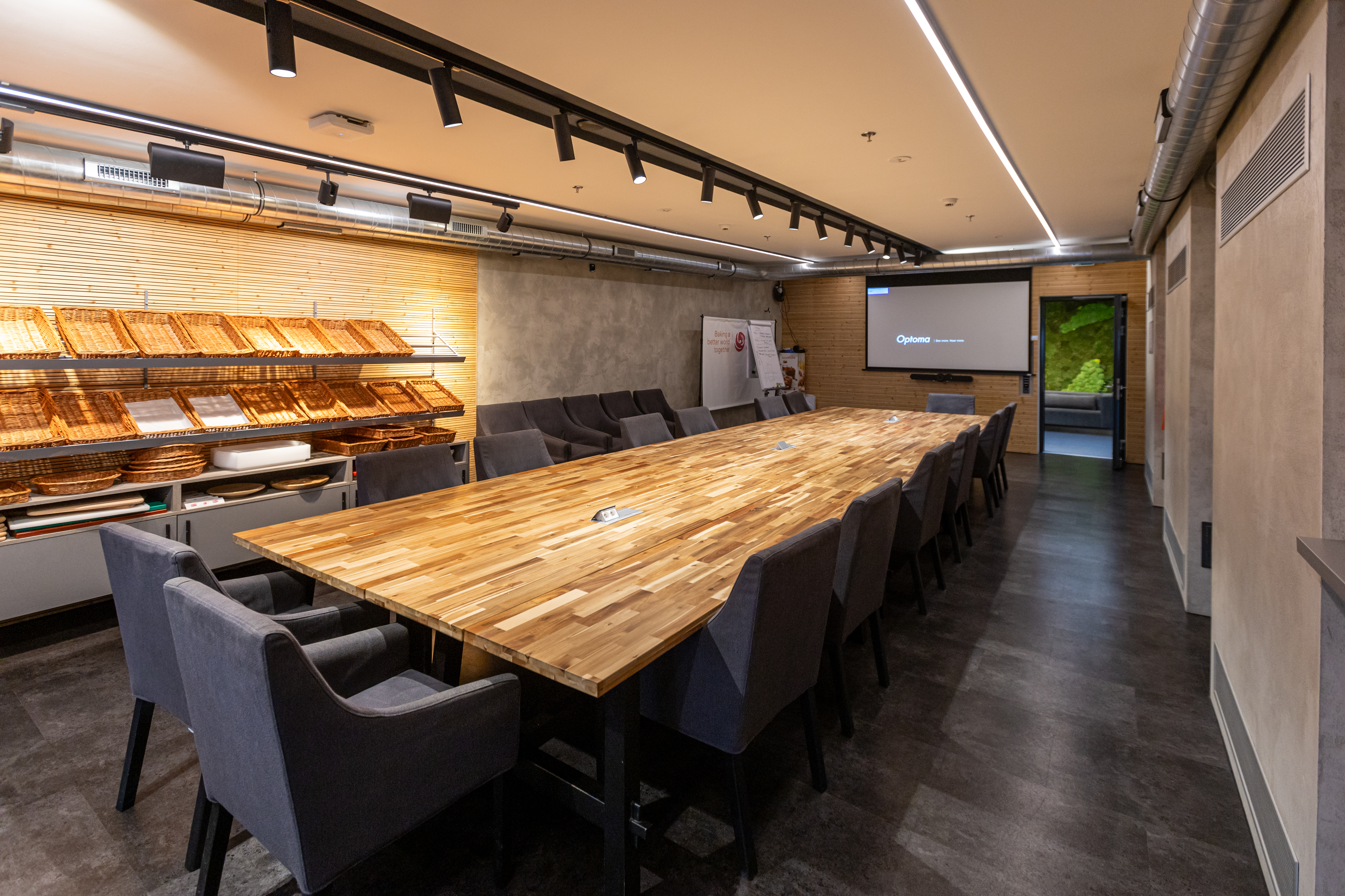 Záměrem investora byla zbudovat reprezentativní prostory společnosti, které budou mít multifunkční využití. Místnost o půdorysné ploše 100 m2 poskytuje zázemí pro kulinářské počiny a setkávání se zákazníky, slouží k velkým poradám či školením.